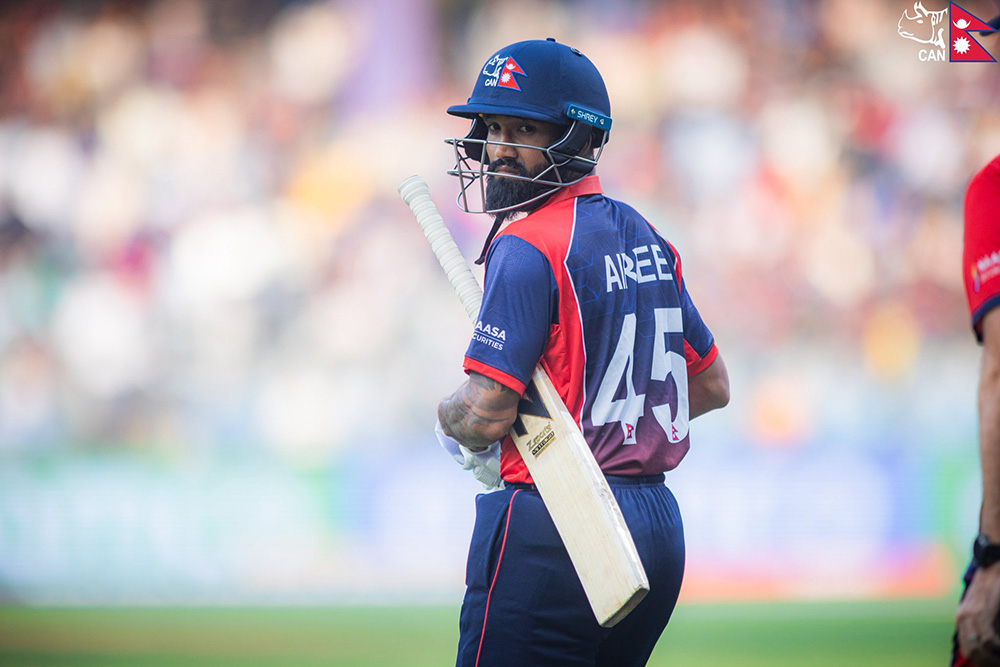 नेपालले तेस्रो विकेट गुमाएको छ । नेपालका दीपेन्द्र सिंह ऐरी ४४ रन बनाएर आउट भएका हुन् । उनलाई साम करनले आउट गरेका हुन् ।