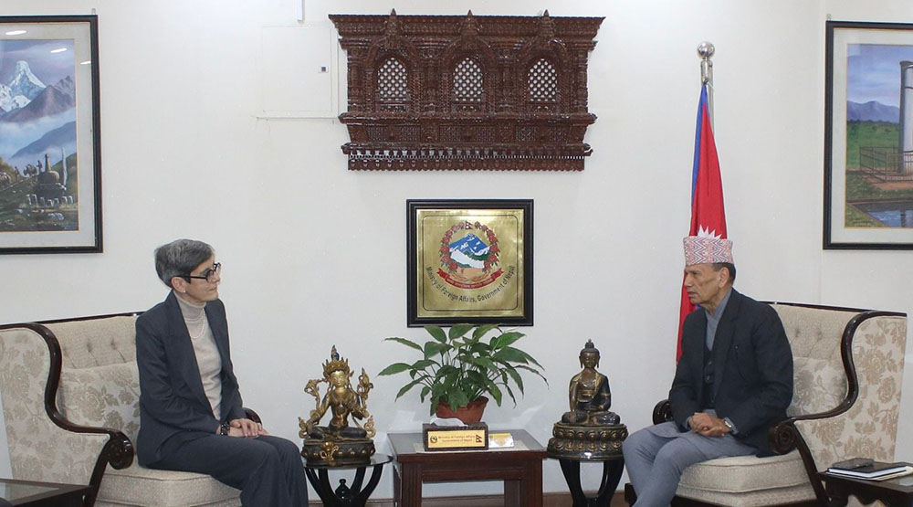 नेपालका लागि स्विट्जरल्यान्डकी राजदूत डा. ड्यानिएल म्युव्लीले आज परराष्ट्र मन्त्रालयमा परराष्ट्रमन्त्री बालानन्द शर्मासँग शिष्टाचार भेट गरेकी छन् ।
