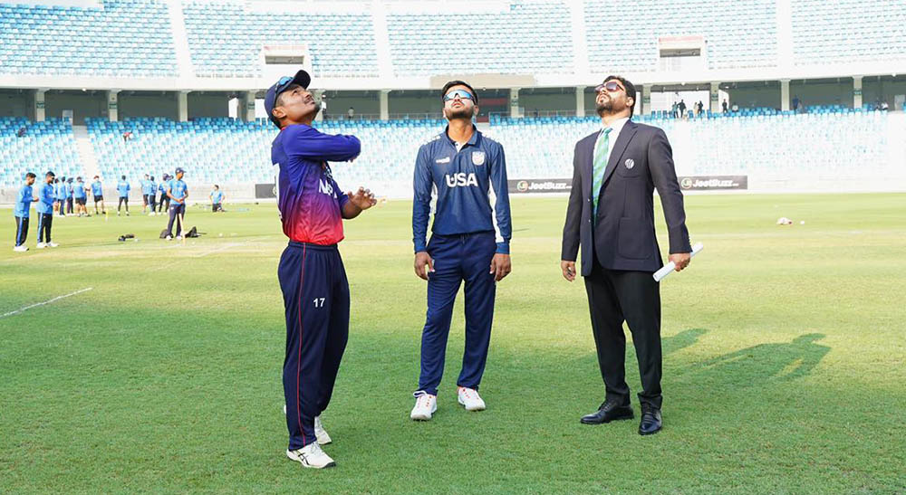 दुबईस्थित दुबई इन्टरनेसनल क्रिकेट स्टेडियममा हुने यस खेलमा नेपालले टस जितेर पहिला बलिङ गर्ने निर्णय गरेको छ । योसँगै अमेरिकाले पहिला ब्याटिंग गर्ने भएको छ ।