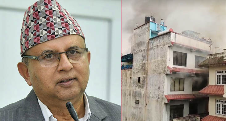 जेनजी आन्दोलनको दोस्रो दिन आज शिर्ष नेताहरुको निवास तोडफोड र आगजनीको क्रममा एमाले महासचिव पोखरेलको निवासमा आगजनी गरिएको हो ।