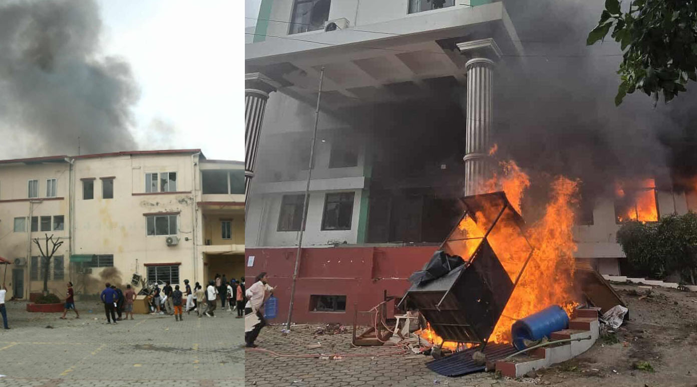 काँग्रेस र एमालेका केन्द्रीय कार्यालयमा तोडफोड र आगजनी