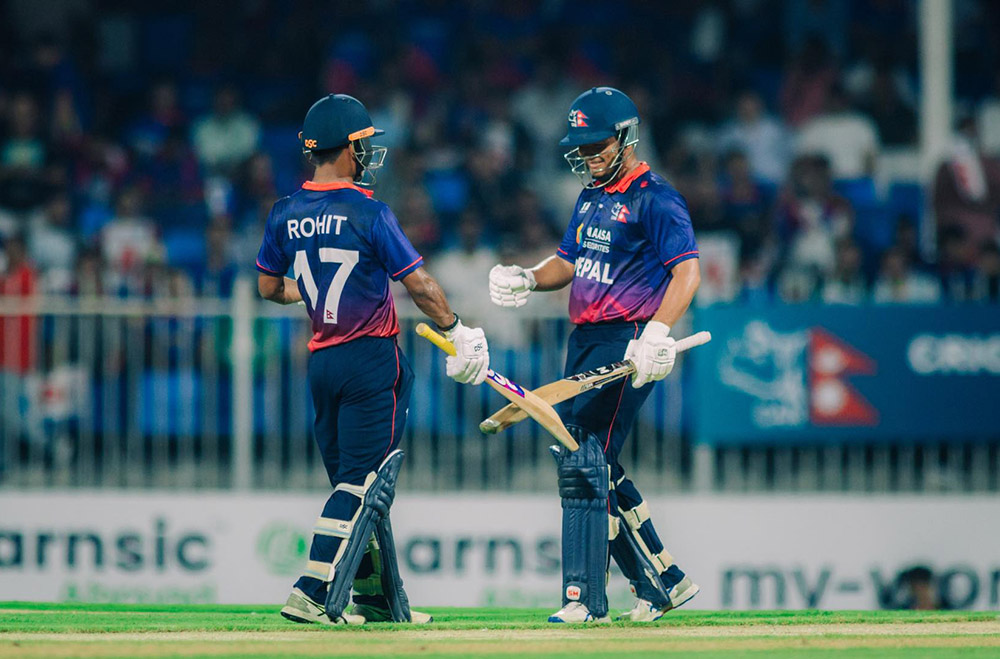 नेपालका लागि कप्तान रोहित पौडेलले सर्बाधिक ३८ रन बनाएका थिए । त्यस्तै कुशल मल्लले ३०, गुलशन झाले २२ र दिपेन्द्र सिंह ऐरीले १७ रन बनाएका थिए । त्यस्तै सन्दीप जोराले ९, कुशल भुर्तेलले ६, आसिफ सेखले ३, सोमपाल कामीले अविजित ९ र नन्दन यादवले अविजित ६ रन बनाएका थिए ।
