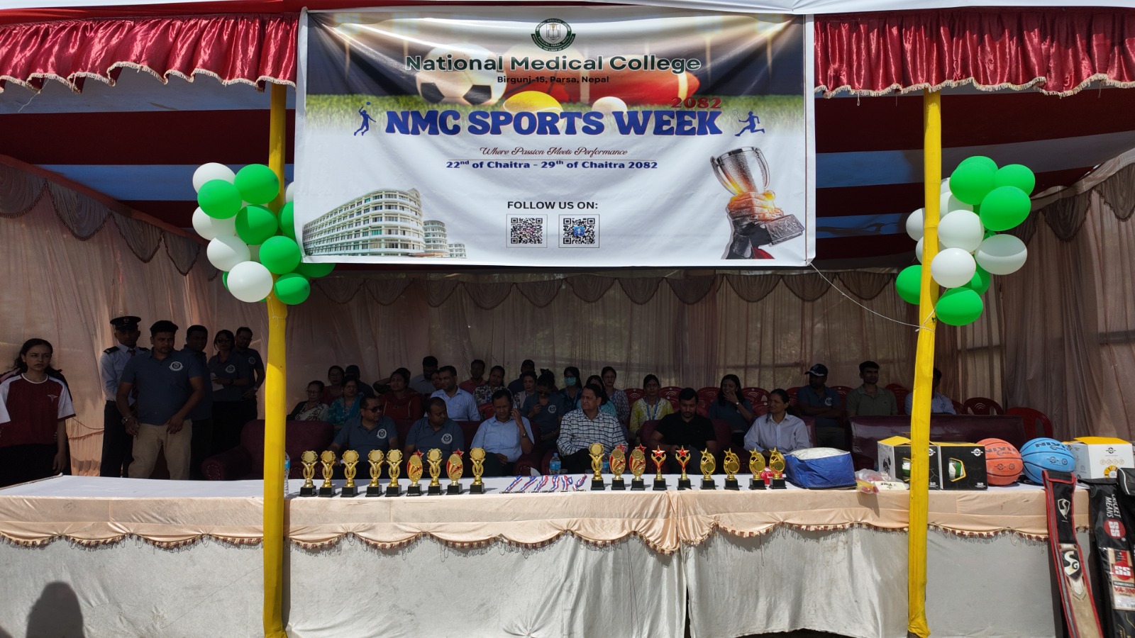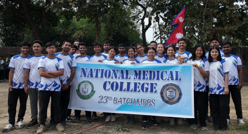 वीरगञ्ज, २२ चैत्र । नेशनल मेडिकल कलेज तथा शिक्षण अस्पताल, वीरगञ्ज द्वारा स्पोर्ट्स वीक २०८२ अन्तर्गत उद्घाटन कार्यक्रम आज भव्य रूपमा सम्पन्न भएको छ । कलेज परिसर स्थित फुटबल ग्राउण्डमा बिहान ९:३० बजेदेखि सुरु भएको उक्त कार्यक्रममा विद्यार्थी, शिक्षक तथा कर्मचारीहरूको उत्साहजनक सहभागिता रहेको थियो ।