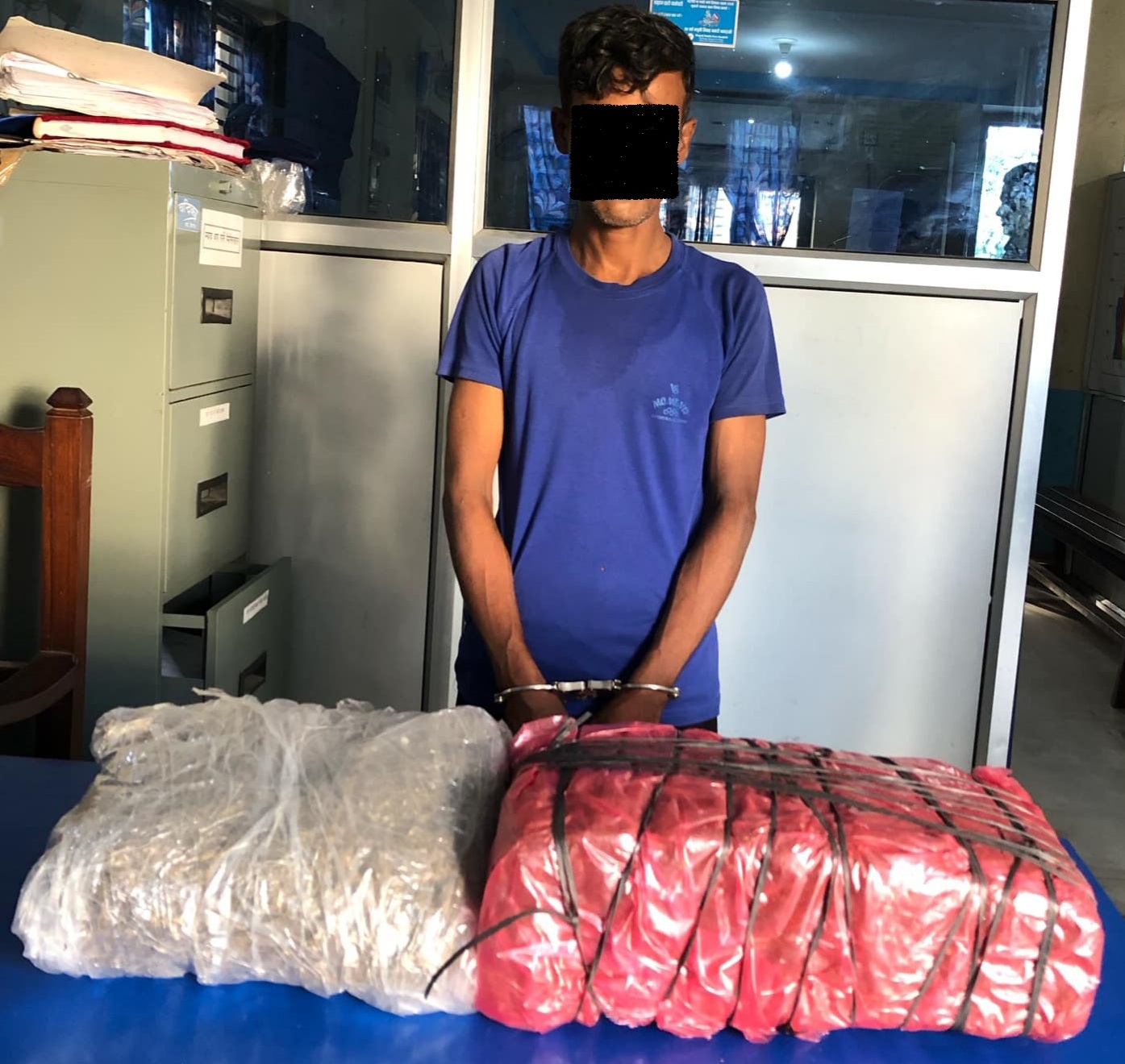 उक्त दिन त्यहाँ बाट खटिएको चेकिङ टोलीले चेक जाँच गर्ने क्रममा संकाष्पदरूपमा पैदल हिंडिरहेको अवस्थामा पर्सा जिल्लाको कालिकामाई गाउँपालिका वडा नं. ०३, हरिहरपुर टोल बस्ने बर्ष ३५ को ललन पासवानलाई रोकी कानूनी रीतपुर्याई खानतलासी गर्दा निजले पछाडी भिर्ने रातो रङ्को झोला भित्र लुकाई छिपाई राखेको प्रतिबन्धित लागु औषध गाँजा ५ के. जी. ९ सय ग्राम फेला परेको हुँदा उल्लेखित लागु औषध सहित निजलाई नियन्त्रणमा लिइ निज विरुद्ध लागु औषध सम्बन्धी कसूरमा पर्सा जिल्ला अदालत बाट सात दिनको म्याद थप अनुमति लिइ थप अनुसन्धान कार्य भैरहेको कुरा आज जिल्ला प्रहरी कार्यालय, पर्सा का सूचना अधिकारी प्रहरी नायब उपरीक्षक दीपक भारति ले बताएका छन् ।