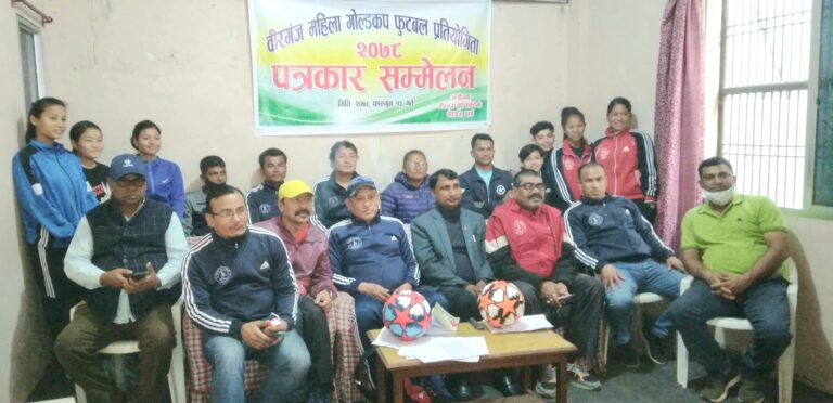 बीरगंज, १३ फागुन । अगामी चैत २ गतेदेखि वीरगन्जमा महिला गोल्डकप फुटबल प्रतियोगिता हुने भएको छ। वीरगन्ज युथ एकेडेमीको आयोजनामा पहिलोपटक महिला गोल्डकप फुटबल प्रतियोगिता हुन लागेको हो।