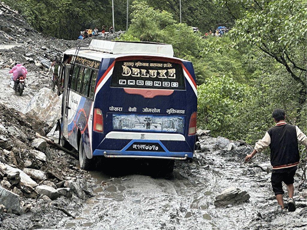 म्याग्दी । चीन र भारत जोड्ने राष्ट्रिय गौरवको बेनी–जोमसोम–कोरला सडकअन्तर्गत म्याग्दीको रघुगङ्गा गाउँपालिका–२ सिरुबारी क्षेत्रको पहिरोले दुर्घटनाको जोखिम बढेको छ । कालीगण्डकी किनारको पाखोमा निर्माण भएको सडकमा खस्ने पहिरोका कारण बेनी–जोमसोम सडकमा नियमित यातायात सञ्चालन प्रभावित हुनुका साथै दुर्घटनाको जोखिम बढेको हो ।