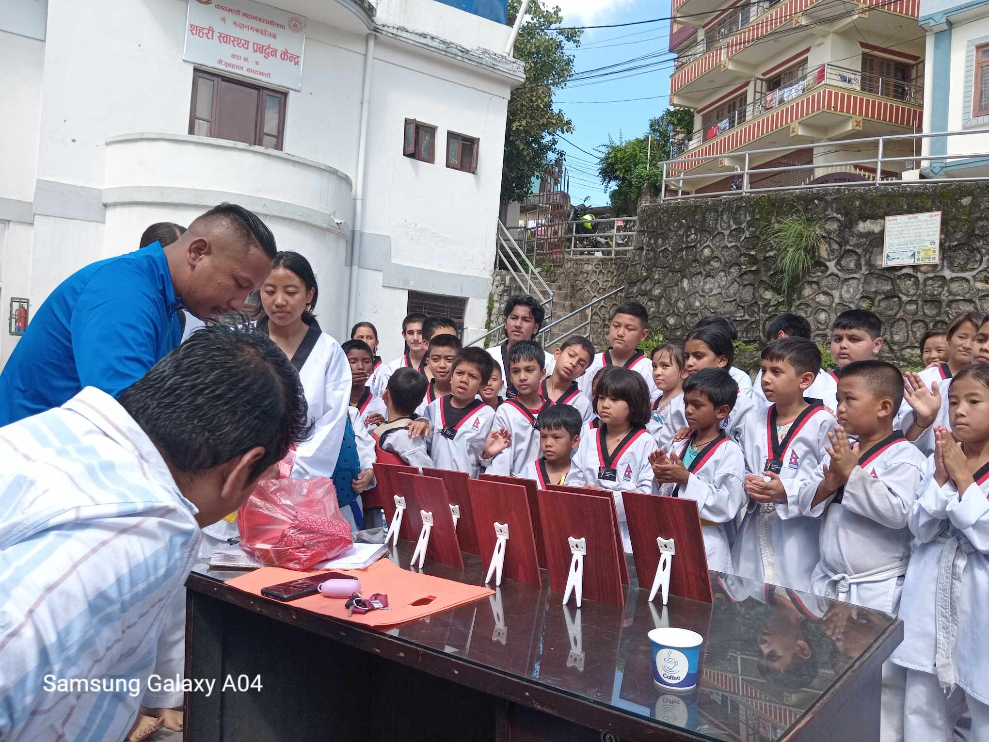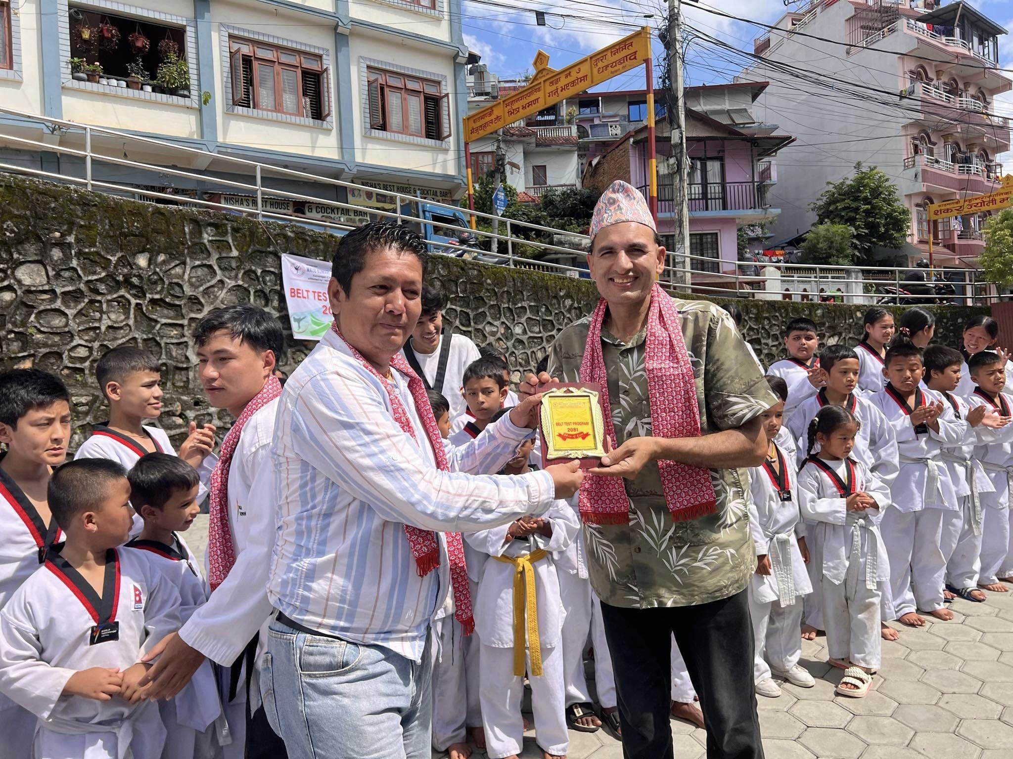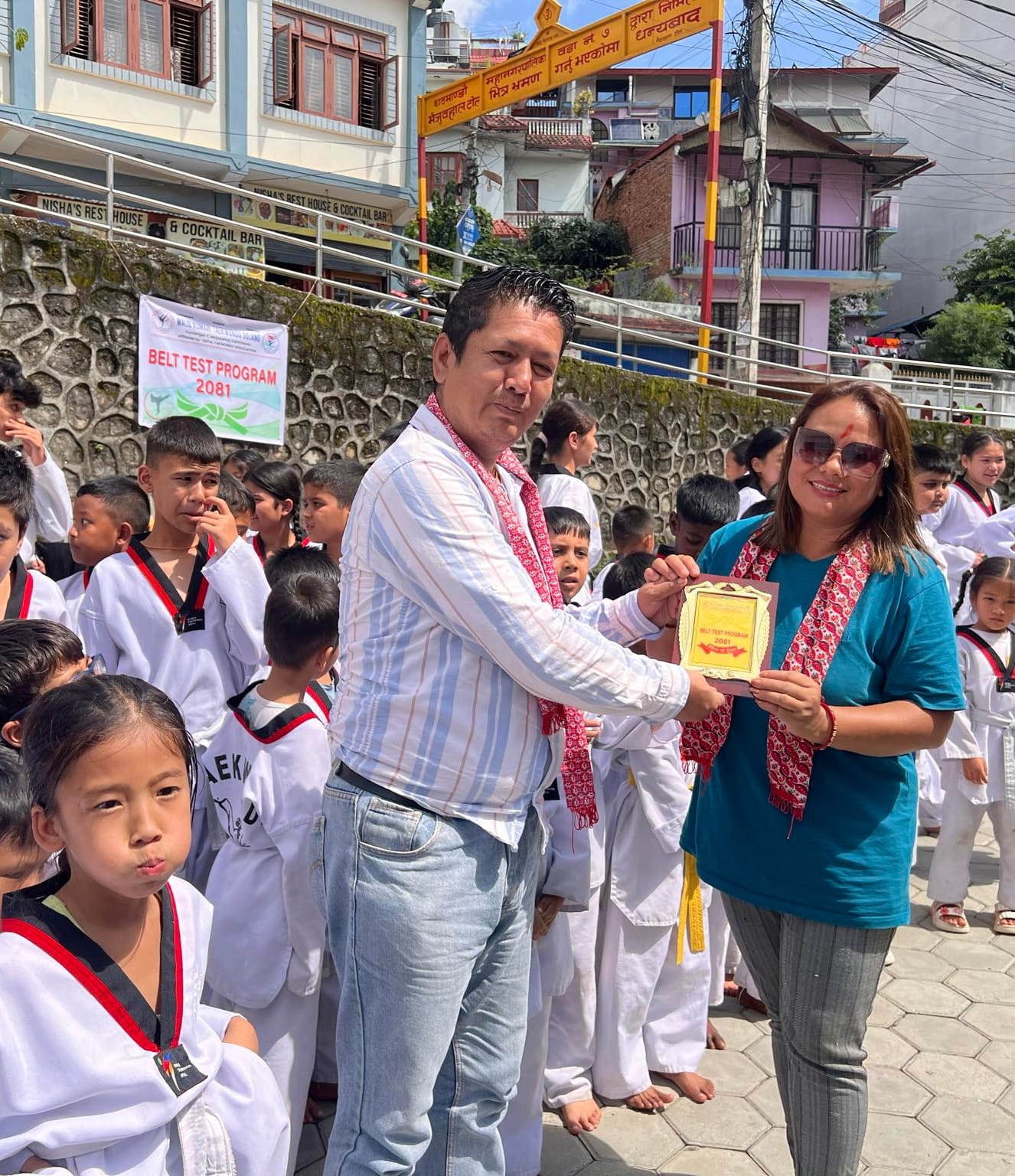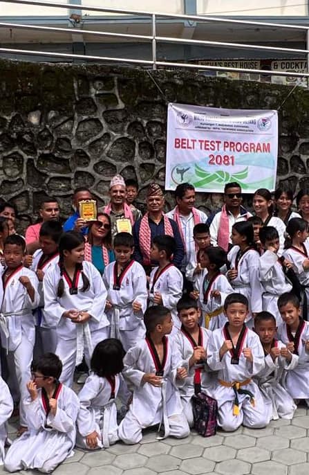 काठमाडौँ, ९ भदौ । काठमाडौँ महानगरपालिका वडा नं. ७ कुमारीगालस्थित मैजुकुमारी तेक्वान्दो डोजाङका जुनियर खेलाडीहरूको ग्रेडिङ कार्यक्रम सम्पन्न भएको छ । शहिद स्मृति सामुदायिक भवनको परिसरमा आयोजित एक कार्यक्रमबिच उक्त ग्रडिङ कार्यक्रम सम्पन्न भएको हो ।