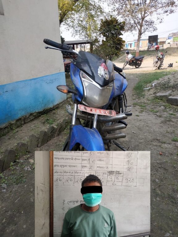 बीरगंज, १६ फागुन । बीरगंज महानगरपालिका वडा नं.२१ ताजपुर टोल बस्ने वर्ष २६ को गोबिन्द महतो को ना.२९ प.२८८३ नम्बरको निलो रंगको १२५ सीसी को डिस्कभर मोटरसाइकल फागुन १३ गते राति ०७:३० बजे आफनै घर अगाडि पार्किङ गरी राखेको अवस्थामा चोरी भएकोमा जिल्ला प्रहरी कार्यालय, पर्सा बाट खोजतलासको लागि खटिएको टोलीले सोही दिन राति ०९:०० बजे उक्त ममोटरसाइकल बीरगंज महानगरपालिका स्थित परवानीपुर ढाट बाट फेला पारी बरामद गरी ममोटरसाइकल चोरी गगर्ने सोही ठाउँ बस्ने वर्ष ३६ को दिनानाथ प्रसाद महतोलाई नियन्त्रणमा लिई निज माथि चोरी कसूरमा अनुसन्धान भैरहेको कुरा पर्सा प्रहरीले जनाएको छ ।