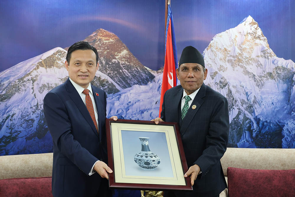 राष्ट्रियसभा अध्यक्ष दाहालसँग चिनियाँ राजदूत माओमिङको शिष्टाचार भेट