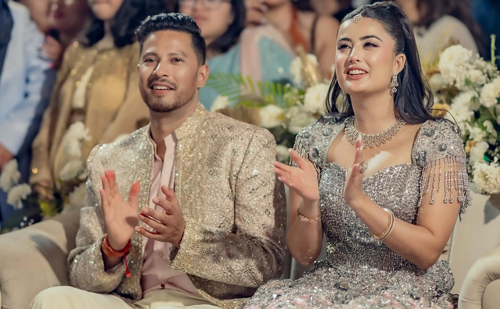यसअघि गत बैशाखमा उनीहरूले काठमाडौं जिल्ला अदालतमा कानुनी विवाह दर्ता गरिसकेका थिए । करिब चार वर्षदेखि प्रेम सम्बन्धमा रहेका उनीहरूले विवाहअघि प्रि-वेडिङ फोटोसुट तथा निकट साथीहरूसँग गोप्य रूपमा ब्याचलर पार्टीसमेत मनाएका थिए । बुधबार आयोजित संगीत समारोहमा पल शाह, बेनिशा हमाल, सन्ध्या केसी र आकृति राजभण्डारीलगायतले प्रस्तुति दिएका थिए ।